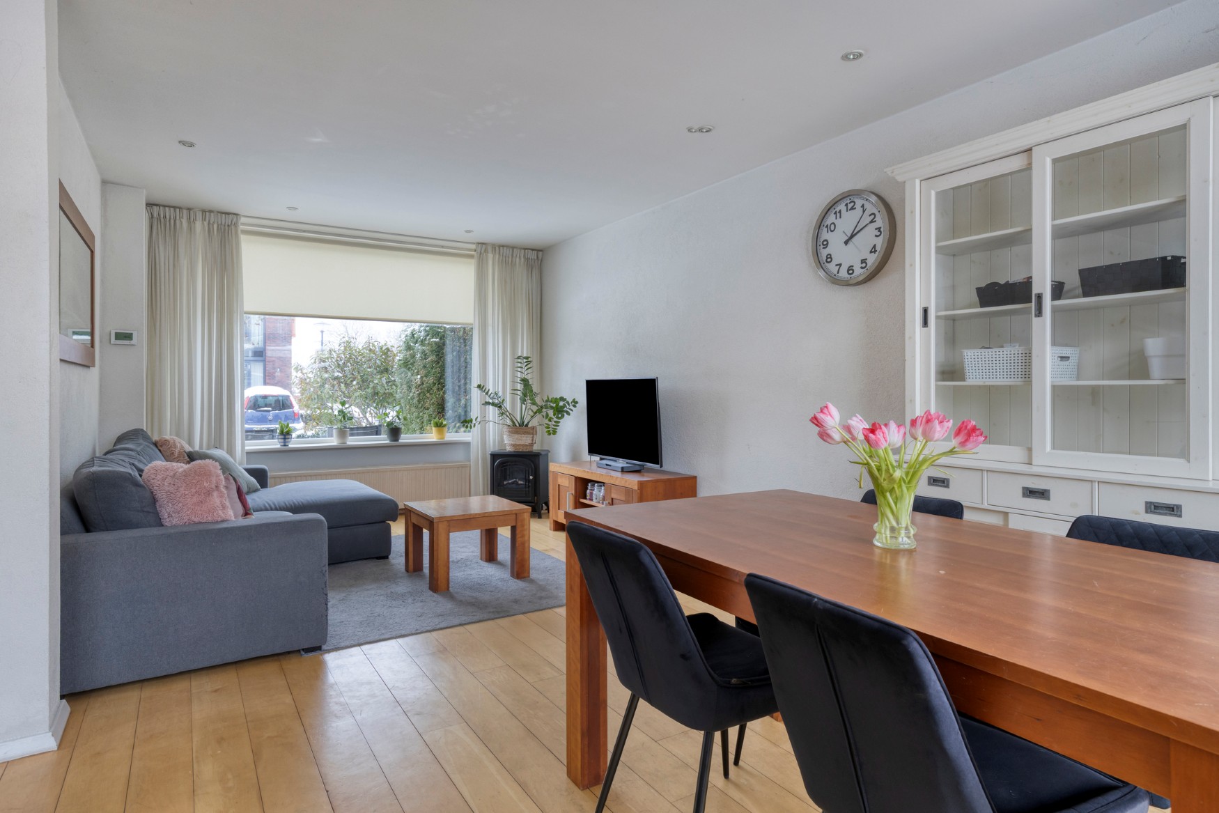 De open woonkamer aan de voorzijde is v.v. een groot raam, hierdoor is de woning heerlijk licht. In het midden van het huis is ruimte voor een grote eettafel.