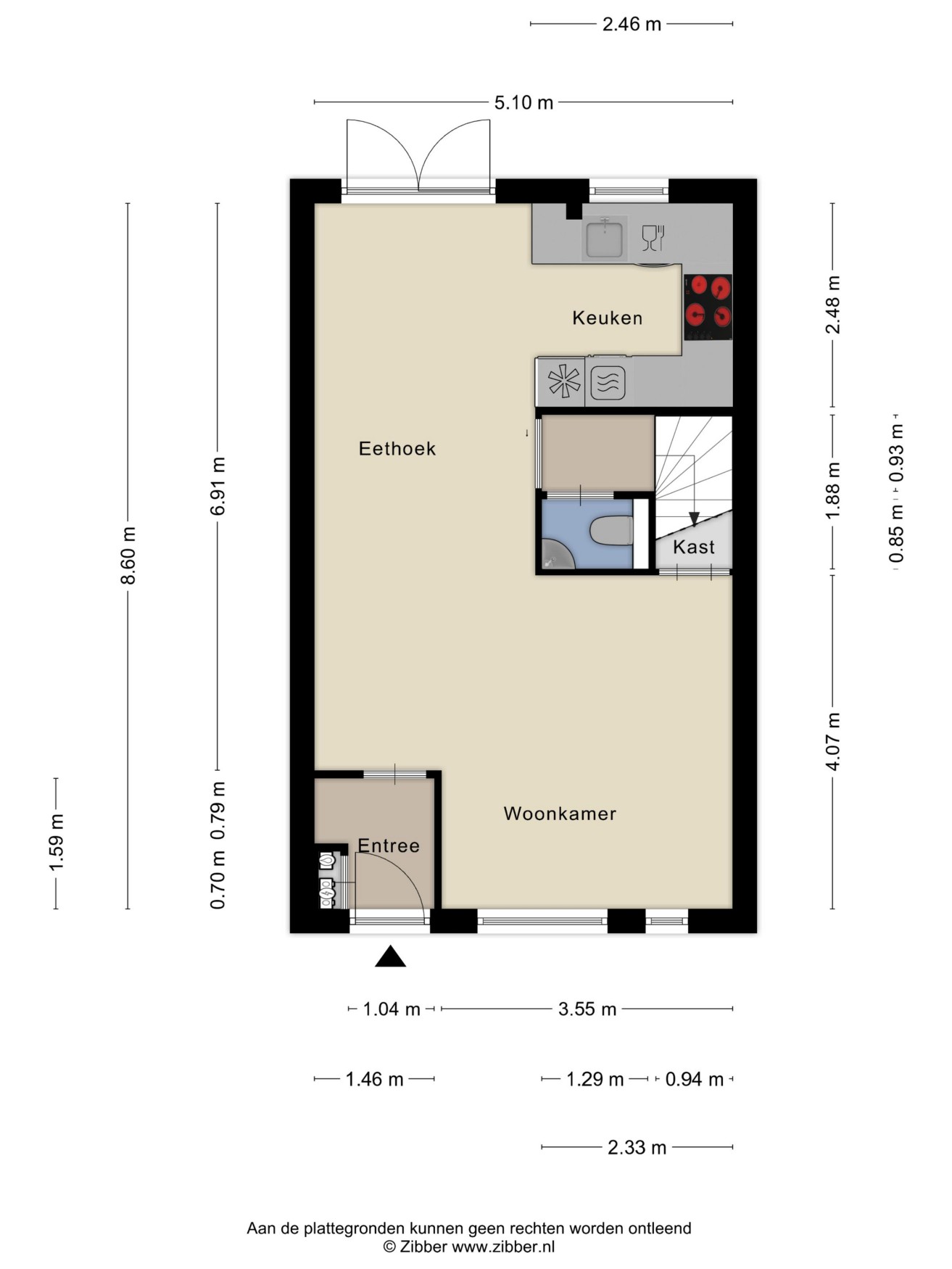In de hal is ruimte voor de jassen en schoenen en vind je de meterkast.