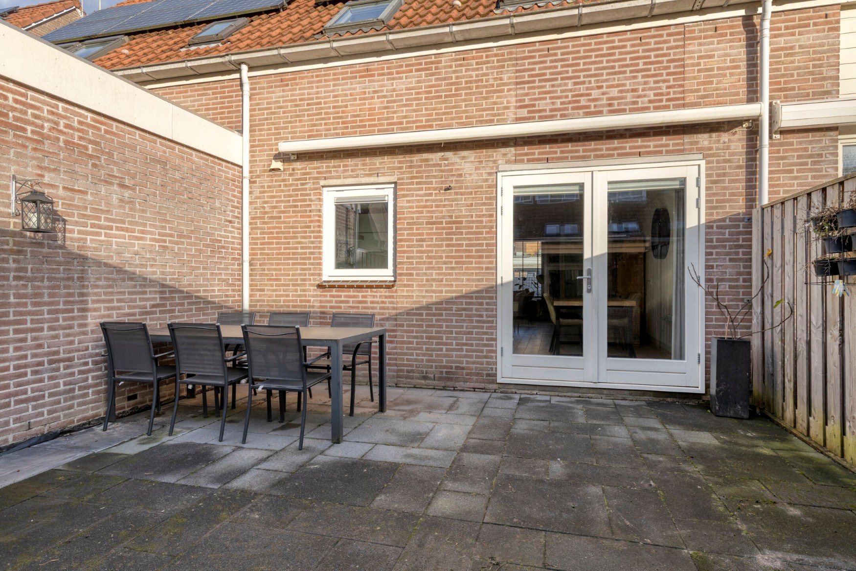De tuin is onderhoudsvriendelijk aangelegd en gelegen op het zuidwesten. Hierdoor kun je heerlijk van de zon genieten. Om toch ook wat verkoeling te brengen is er het zonnescherm over de gehele achtergevel. Ook kun je lekker onder de veranda gaan zitten. Hier vind je ook nog een dichte berging waar fietsen kunnen staan. Het achterom is hierdoor erg praktisch.